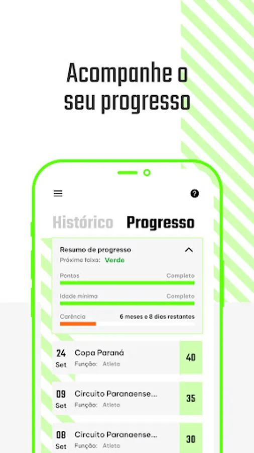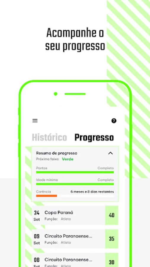 See your history of participation in events, your progress to the next belt and also the next official events of the Paranaense Judo Federation.