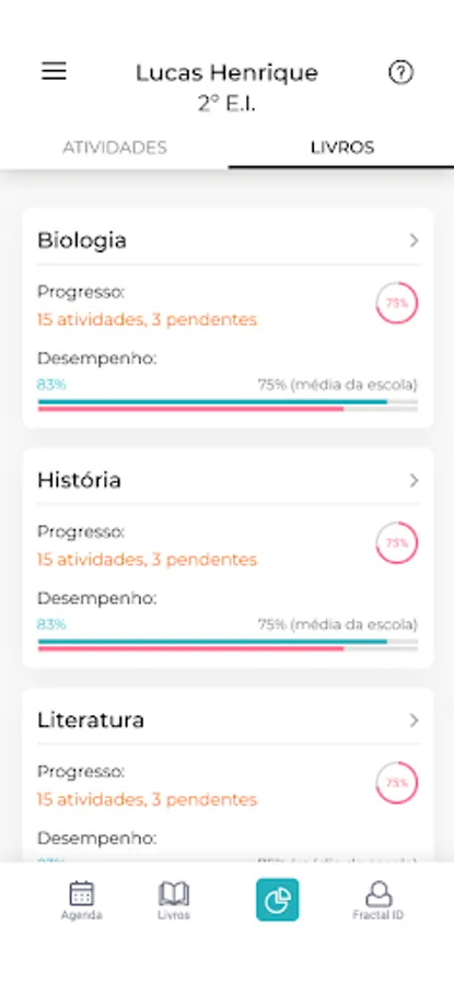 Through the reports generated by the APP, the student will be able to know performance in relation to specific topics of each subject, in addition to monitoring their performance through the histories of tasks, modules and tests.