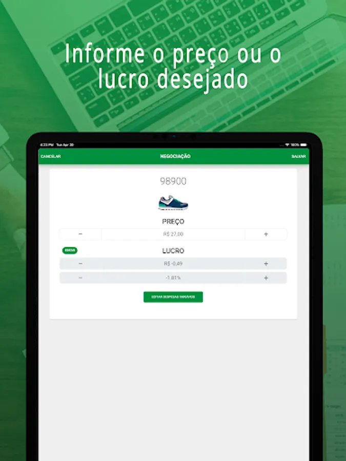 The Negotiator app shows results in real time, providing the user with the security of a sale price that generates profit for the company.