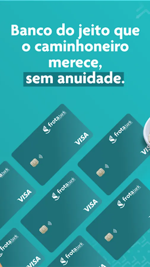 Frotabank, your bank on the road. Designed for the truck driver, made for everyone. The digital account without annuity and without consultation Serasa with a lot of benefits. Scroll down to find out why Frotabank is perfect for you 😉