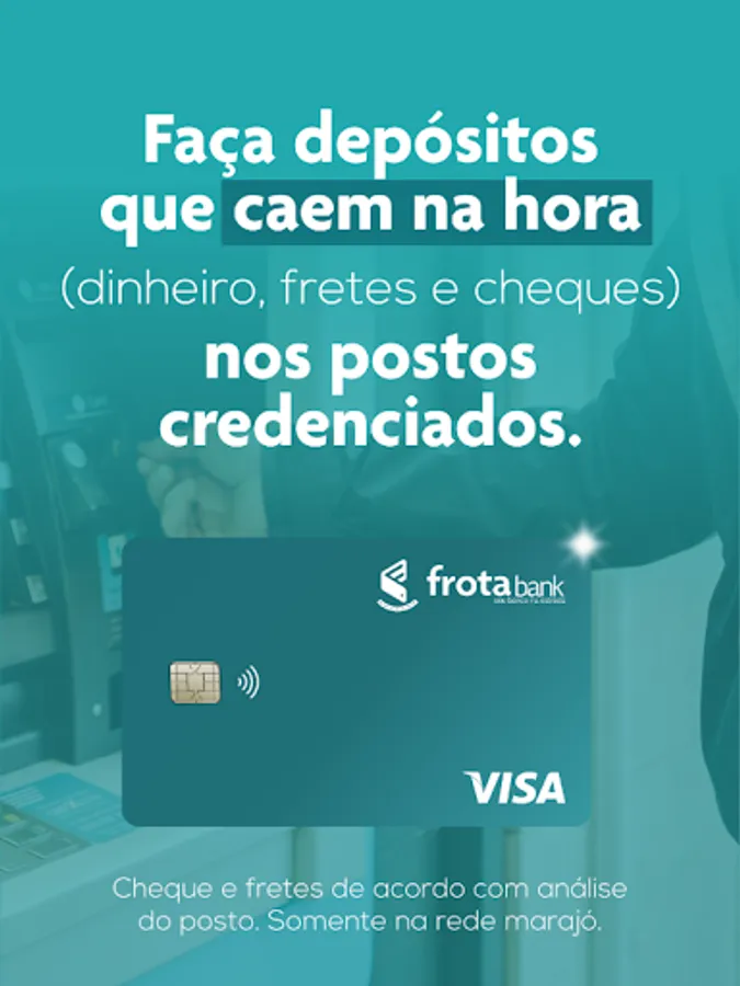 Transfer money for free between Frotabank accounts. You can also download it for free via PIX (individual). Want to withdraw money? Enjoy up to 2 free withdrawals per month on the Banco24Horas network.