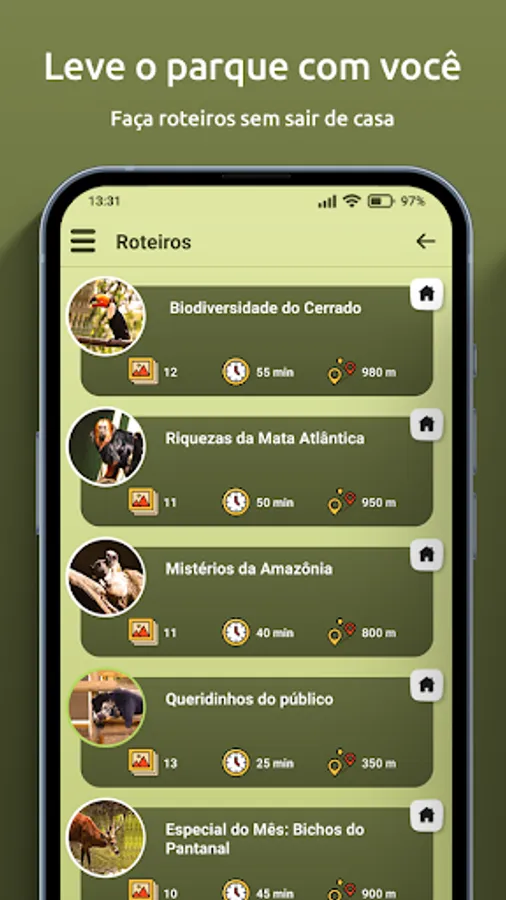 Get ready for your visit to the São Carlos Ecological Park. Choose a tour and start collecting stickers during the tour. Learn more about the animals in the park in a light and fun way. Collect your stickers and prizes on the album. An accessible experience with audio description and videos in Libras.