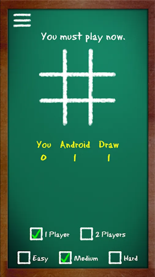 The one player mode includes three difficulty levels: easy, medium or hard.