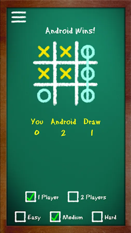 This game supports one player and two player gameplay, so you can play against a friend or against your Android device.