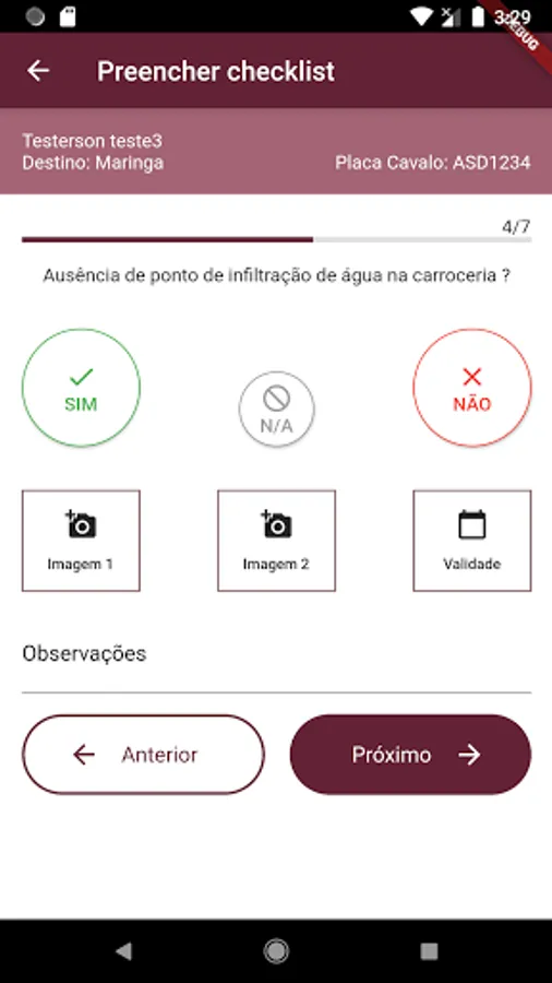 Developed for employees in the yard, it performs a checklist in the vehicle, being able to record evidence and observations for each item.