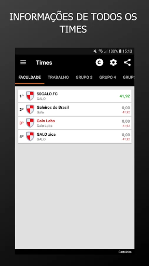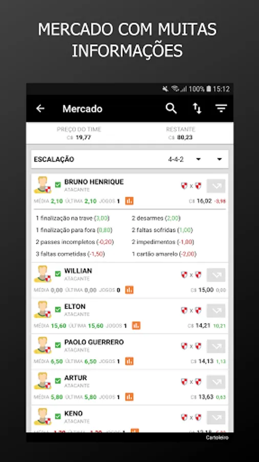 Follow everything about your team from the biggest Fantasy Game in Brazil. Check out the main features of the app: