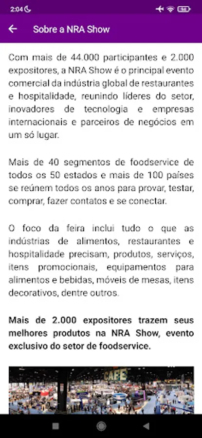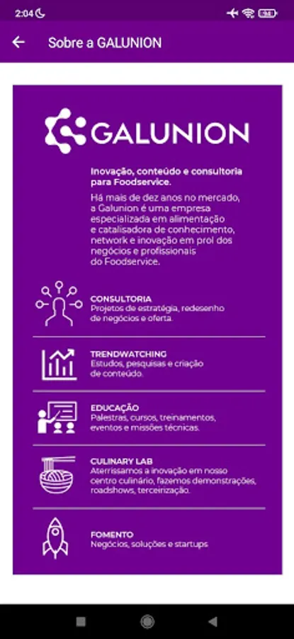 App for disseminating information and communication with participants of events and technical missions organized by Galunion Consultoria para Foodservice.