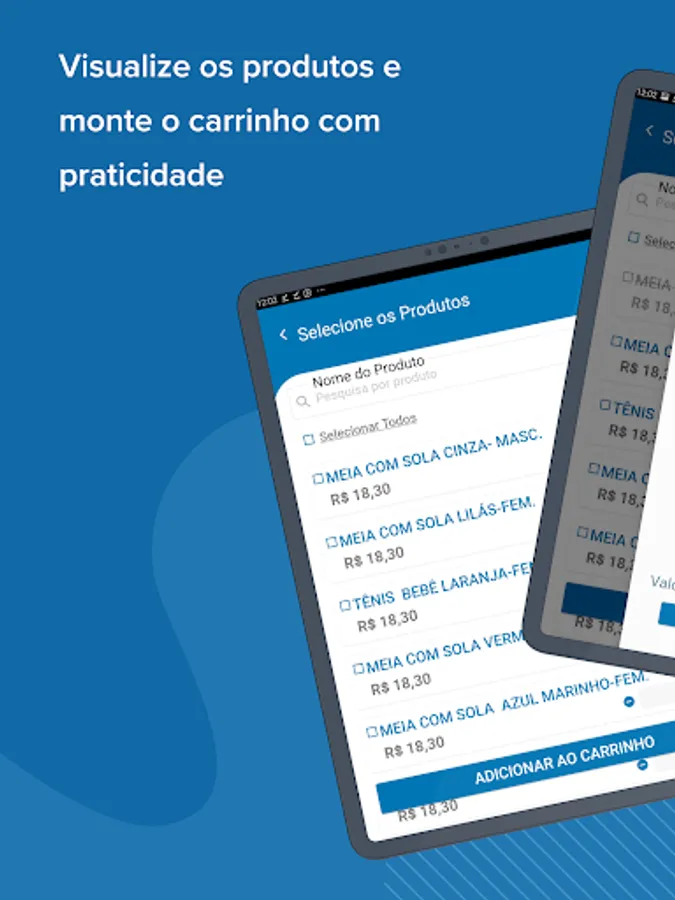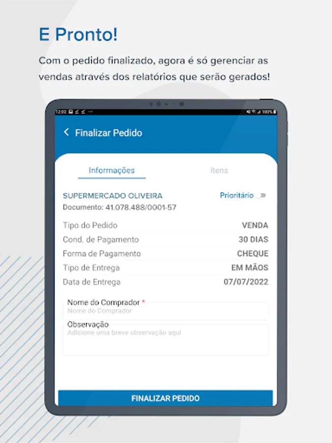 The sales system offers visual and technical support to salespeople and/or representatives in the sales process, which in addition to enriching the contact with customers with a modern presentation of their products, adds agility to the collection of orders with a minimum of typing, reducing the possibility of errors at the time of sale.