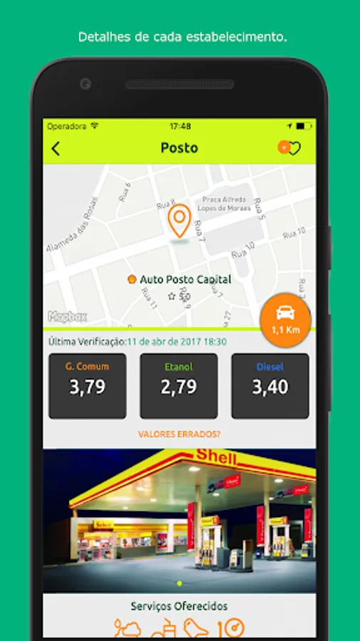 The application provides the updated fuel prices and the services available at gas stations near you and on your route, helping you fill up with the economy.