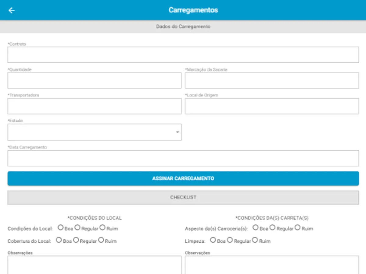 App for employees of the company GBM LOGÍSTICA LTDA for registration, tracking of transport, loading and unloading of general cargo.