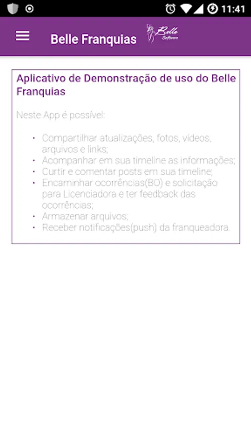 Application Belle Franchises use of demonstration in this App you can: