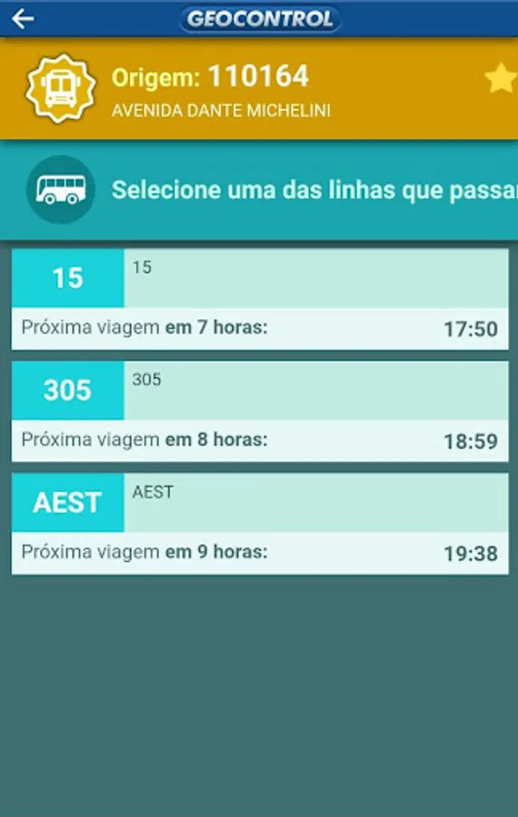 It allows the consultation of forecast of the time of the collective transport in the bus points, being possible to realize consultations by point of embarquement.