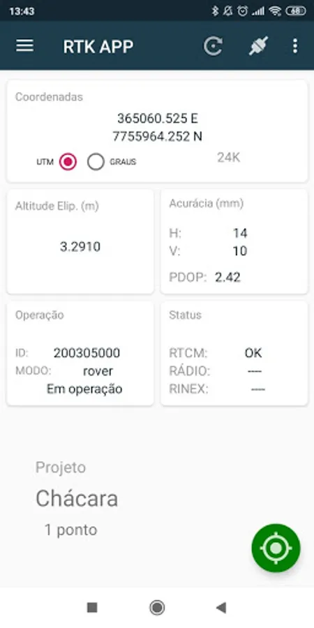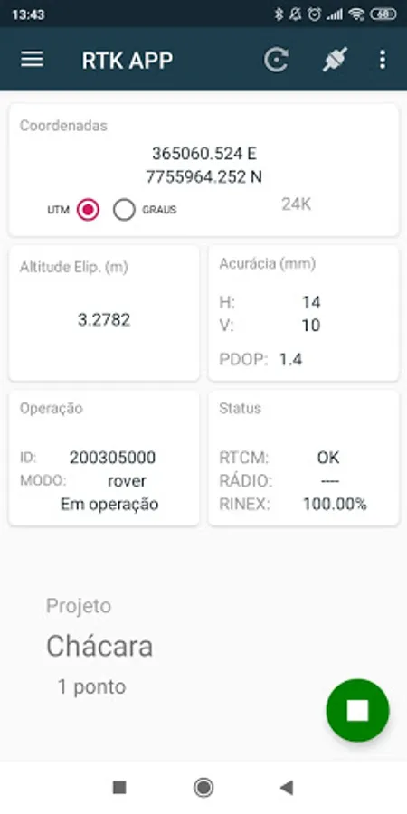 The RTK APP is a data collector exclusive to Geocontrol's two-frequency GNSS receivers. The application offers data collection and management in an easy and practical way, the location of a point or line, and is used to configure all the resources of the receivers, such as base station or rover and the registration of the RINEX file, obtaining high precision in its positioning .
