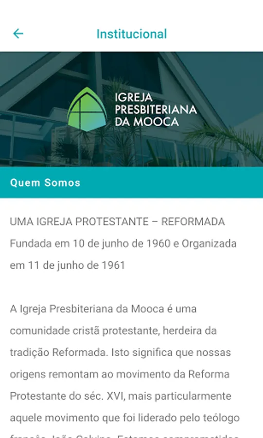 The Presbyterian Church of Mooca is a Protestant Christian community, heir of the Reformed tradition. This means that our origins date back to the movement of the Protestant Reformation of the sixteenth century, more particularly the movement that was led by French theologian John Calvin.