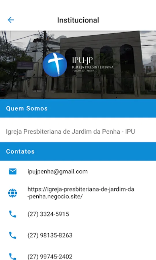 Welcome to the IPUJP (Jardim da Penha Presbyterian Church) app. Here you can learn more about our community, its schedules, newsletters, news, studies etc.