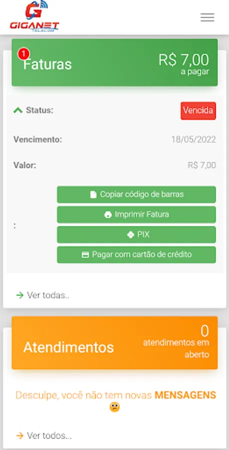 Hello, welcome to the GIGANET TELECOM Subscriber Center. Here, you will be able to consult your invoices, check your consumption and check the speed of your plan and much more. All this at a click!