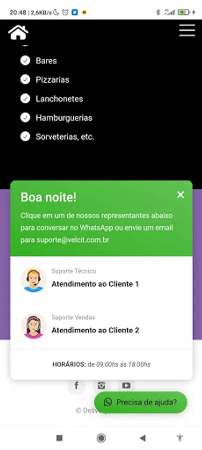 The system can be used for Delivery, for withdrawal at the counter or for orders at the table, in the latter two cases, the seller can use a QR Code on the table so that the customer can access the Menu (via browser or via App) and have access to your entire catalog, being able to place the order that will go into the seller's system and Whatsapp. The order can be forwarded to a delivery person and/or printed.