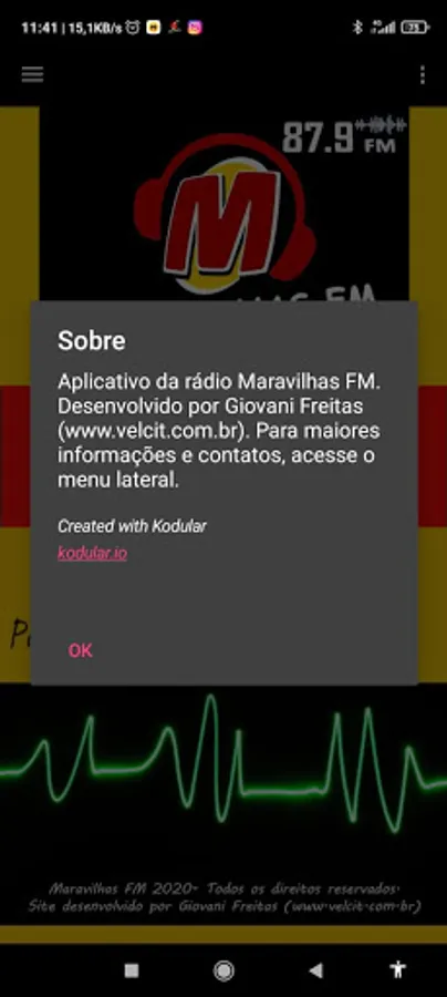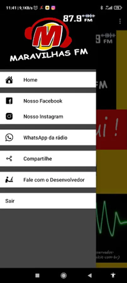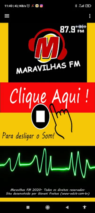 Application with the Web Radio Wonders FM of the city of Maravilhas / MG.