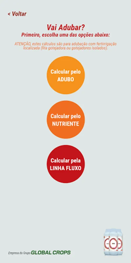 The FLUXO application is exclusive for farmers to calculate the amount of fertilizers (Fluxo brand) that they will use in their crops.