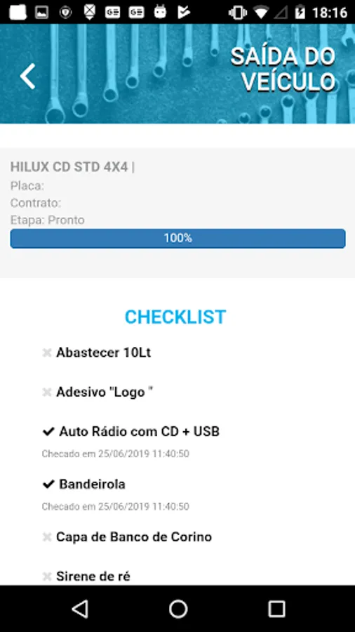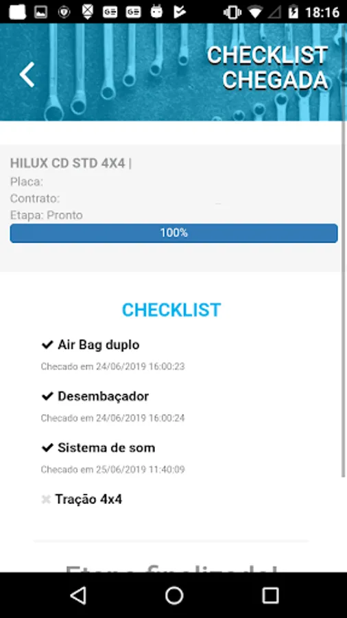 Application for vehicle checklist of the Grupo Águia Branca Logistics Division.