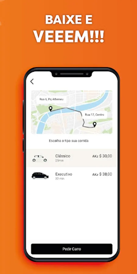 Our app is the perfect choice for those who want to move around the city with practicality, comfort and safety. With our platform, you can order a quality car with a simple tap on your smartphone. We connect you with professional and reliable drivers, carefully selected to provide an enjoyable and efficient transportation experience.
