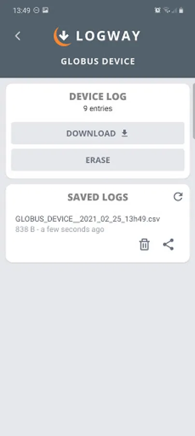 App to download logs from devices with Datalogger function enabled