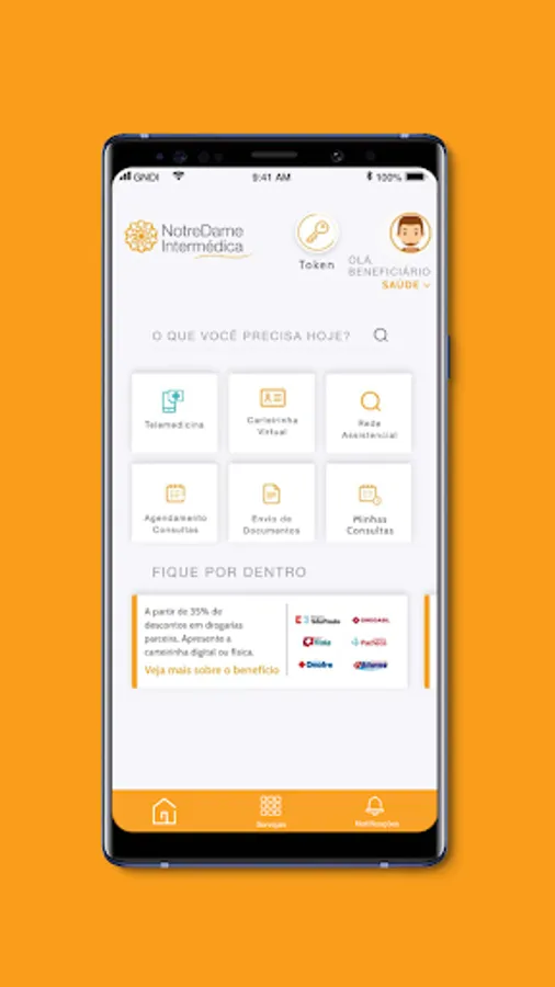 With GNDI easy you can access your digital card. And best of all: it is available offline after your first access. So, if your data package ran out during the service, for example, don't worry: in two clicks you can present the number to the attendant. You can also use this card at partner drugstores to get incredible discounts on medicines and perfumery items.