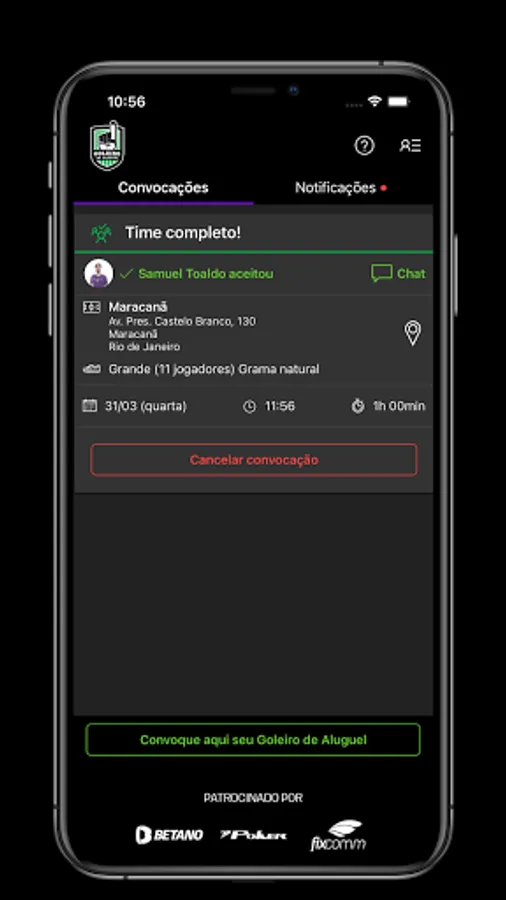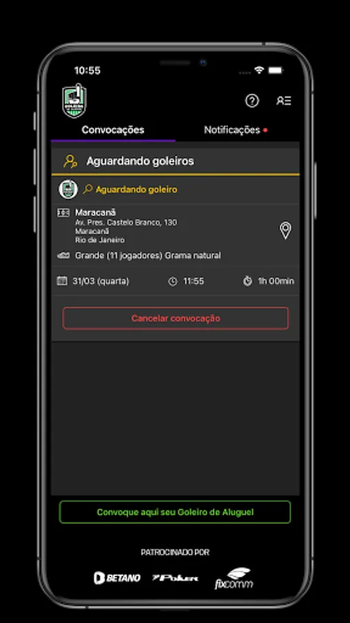 Goalkeepers use the same app to receive the calls, accept according to their availability and field preference. They start receiving 60% of that amount per game present.
