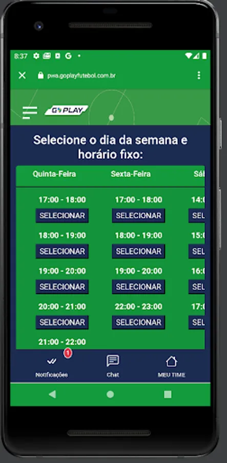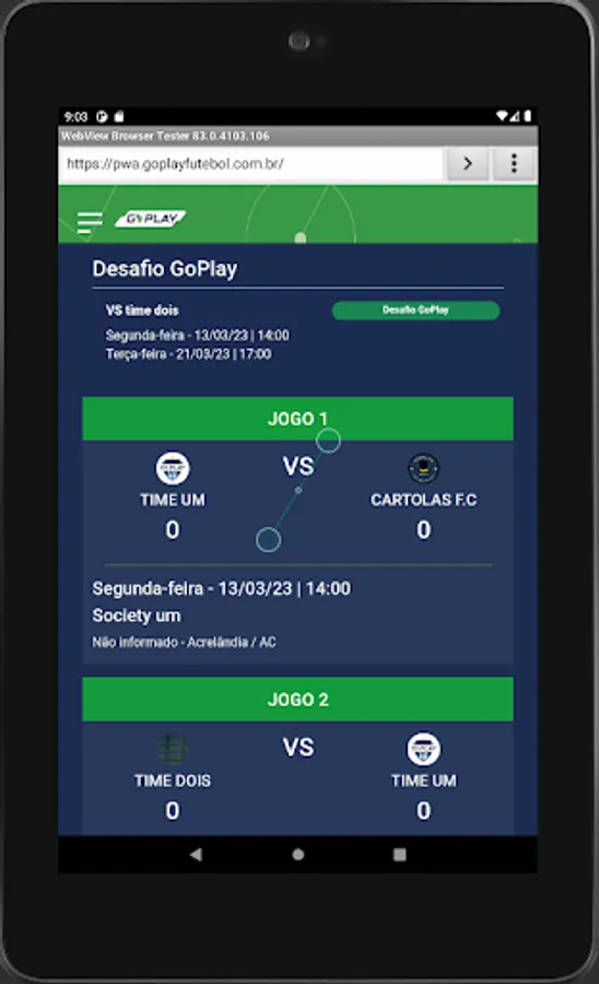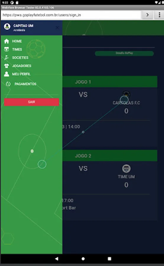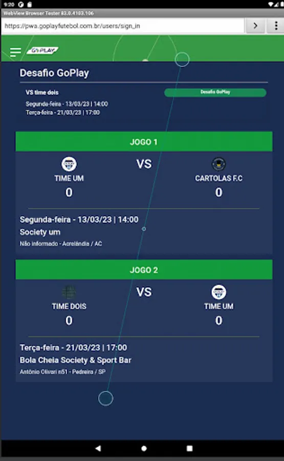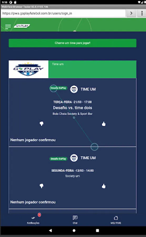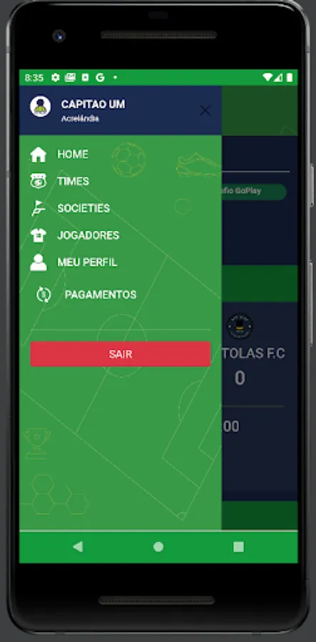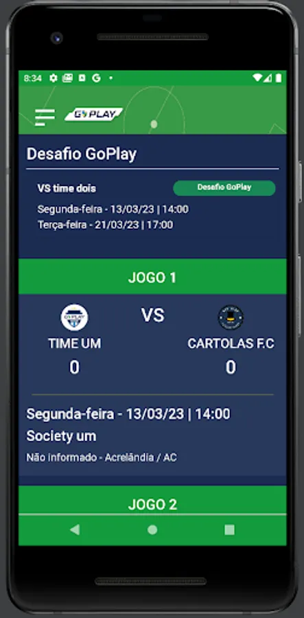 Players have access to matches with location, time and date directly on their home page, where they can confirm presence/absence in the match, can make themselves available on the “MERCADO DA BOLA” (list of players who are available to play for teams that need it) and on In the case of an invitation, the player who accepts it will be able to enjoy a football match, completing the team that was lacking.