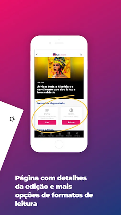 • With the GoRead app, you can read as many magazines as you want, both current and past issues. In addition to having access to news updated in real time.