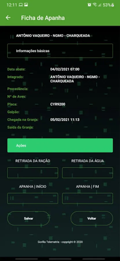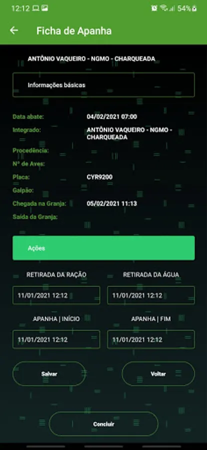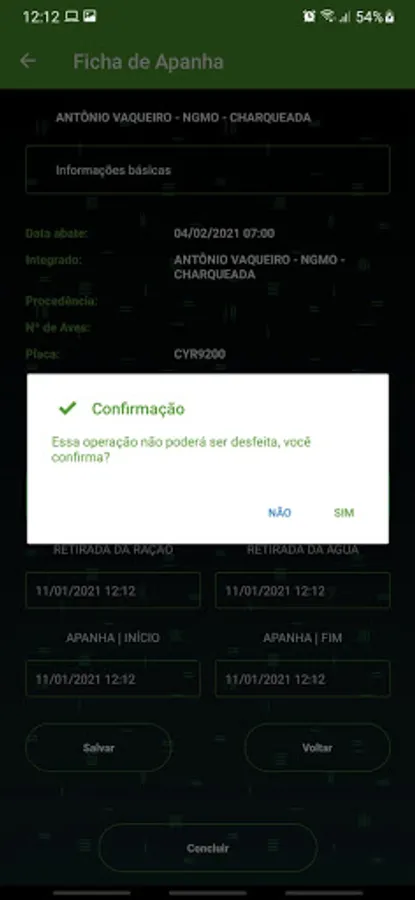 Focused for the owner of the farm to inform the dates and times of actions of the chicken collections for slaughter!