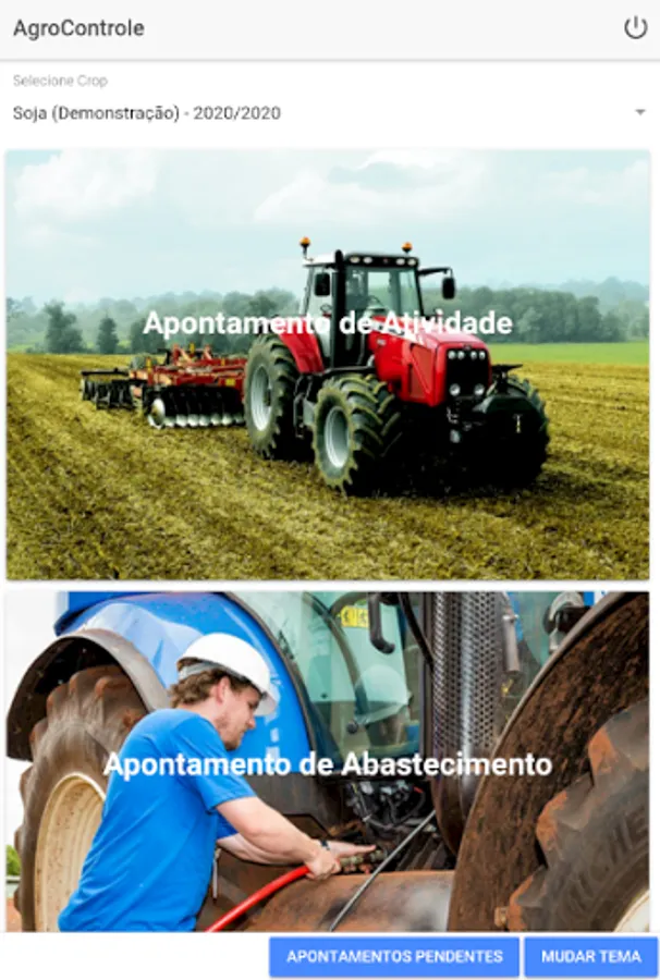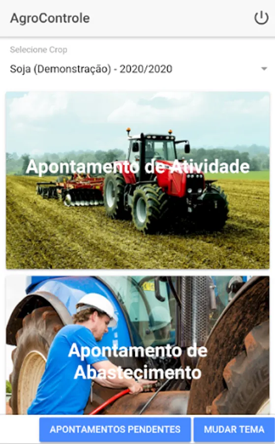 Aplicação cliente de apoio a plataforma AgroControle. Utilizado por já usuários do sistema como apoio a apontamento de atividades.