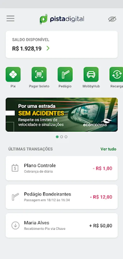 Pista Digital is a service platform created by Greenpass in partnership with the Ecorodovias Group. The platform allows frequent users of the highways managed by the group to have access to a totally free automatic toll payment service. Fees are only charged in case of use on other highways.