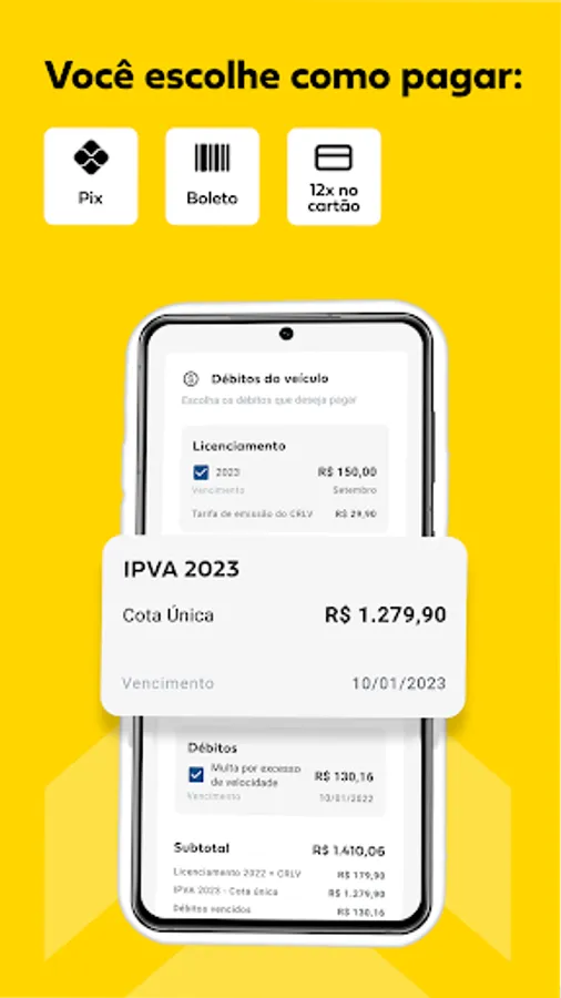 Pay for digital licensing easily through the Gringo Super App. Solve everything on your cell phone, simply and safely. Choose between bank slip, Pix or credit card as a payment method. You can pay in up to 12 installments on your card.