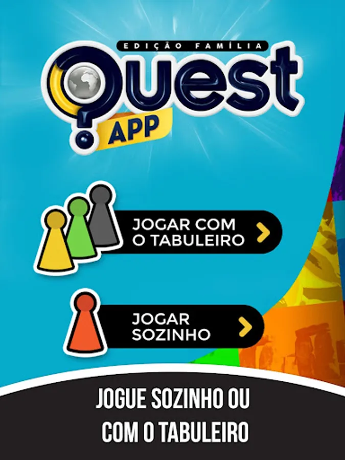 The way to play with the Quest board app is designed to enrich the user experience with the physical game. When a player lands on APP house, the Quest application should be used in this module (Play with the board). The user chooses the topic in the application and make their bets with chips of the game. After the chosen topic, just get ready and race against time, a question will appear on the app for the player and this should answer to the other players. After the time for the application response displays the correct answer and if the same answered by the player does not lose his bet chips.