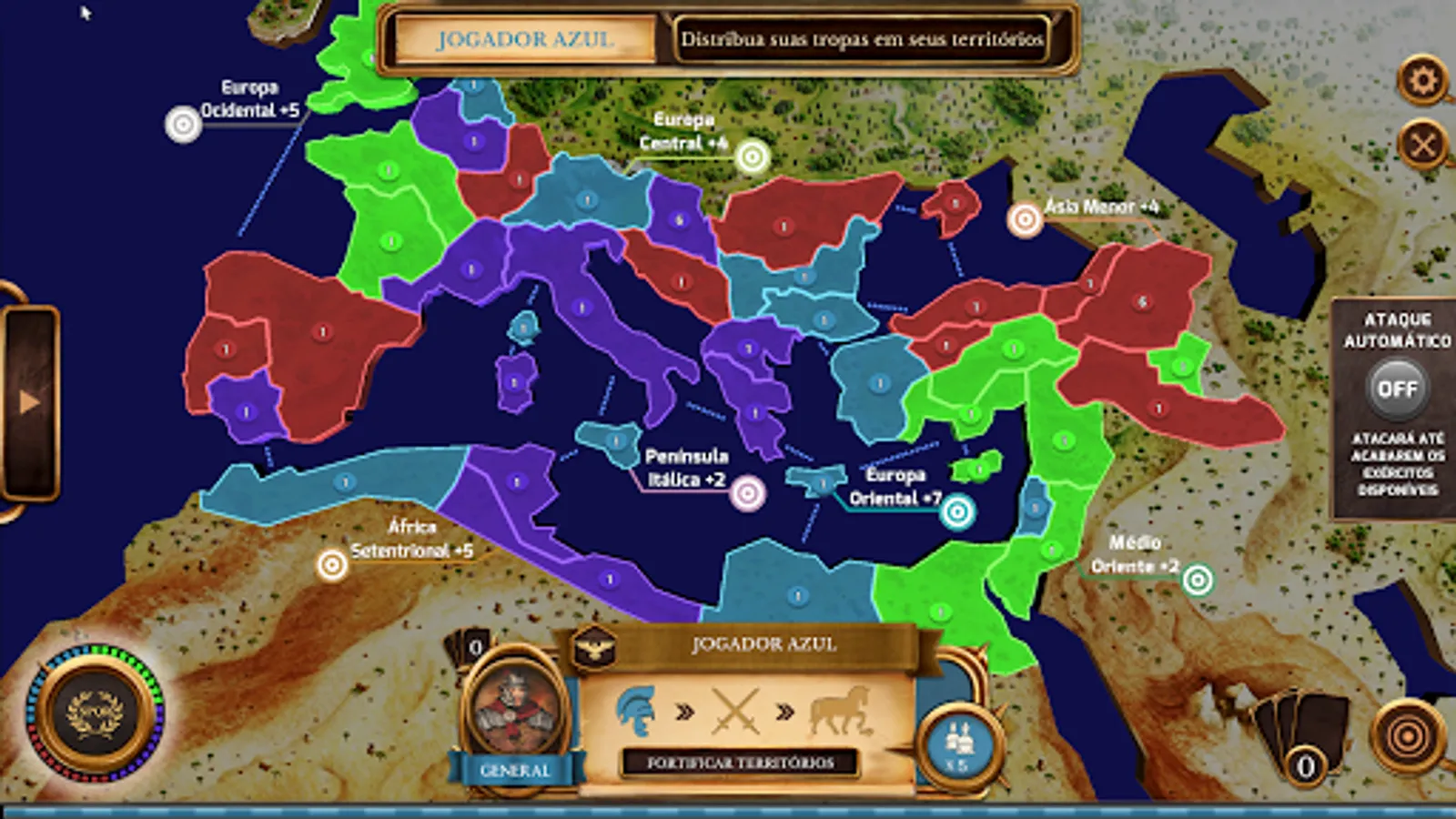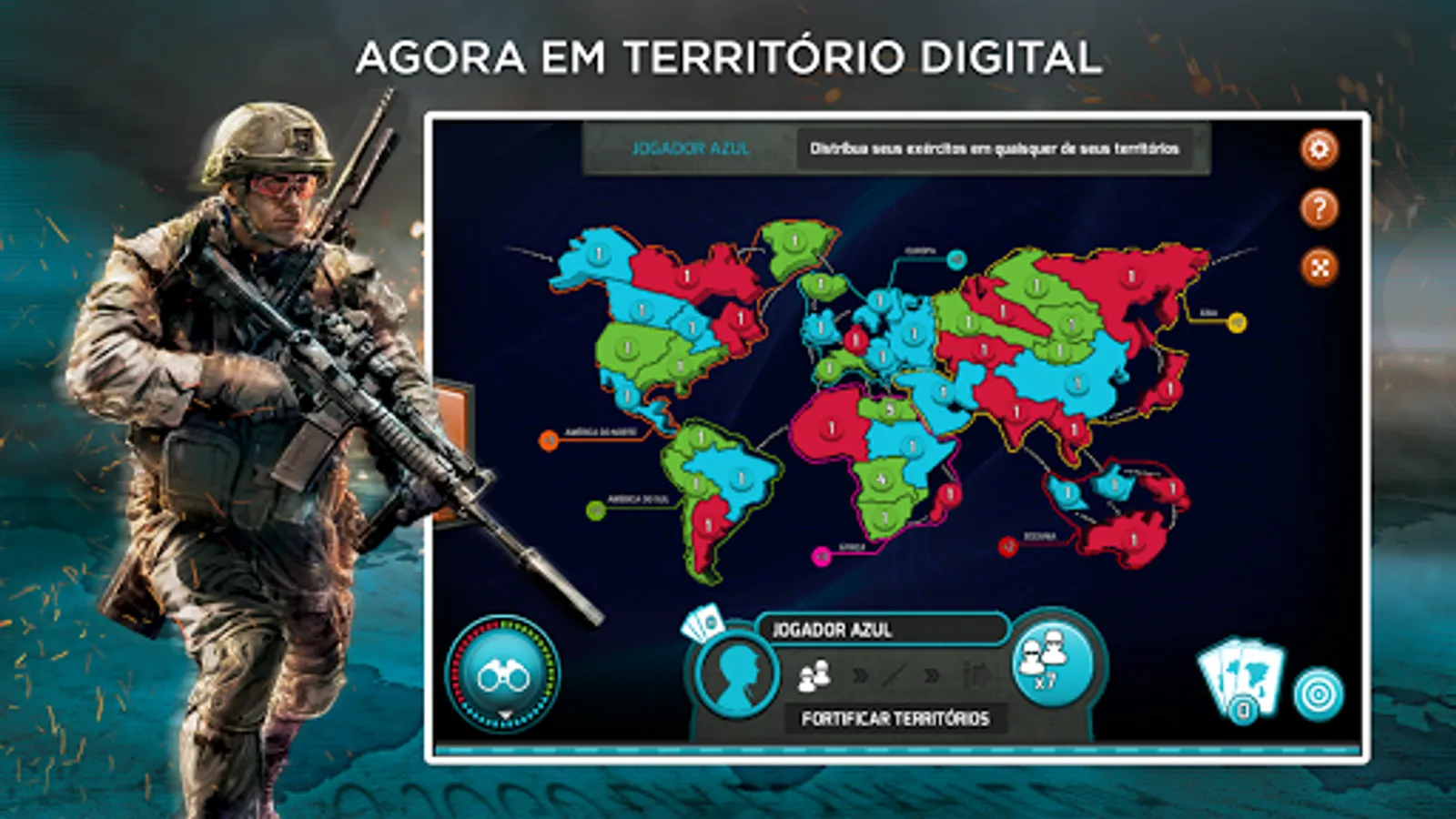 Classic Game: Feel like a real general. Aim at your goal and carefully define your strategy. Attack at the right time, protect your borders and defend your territories. Dominate entire continents, invade and conquer opposing territories. But evaluate your movements well because, as in the great wars, poorly planned attacks can cause great powers to fall while the correct strategy can transform small armies into great empires!