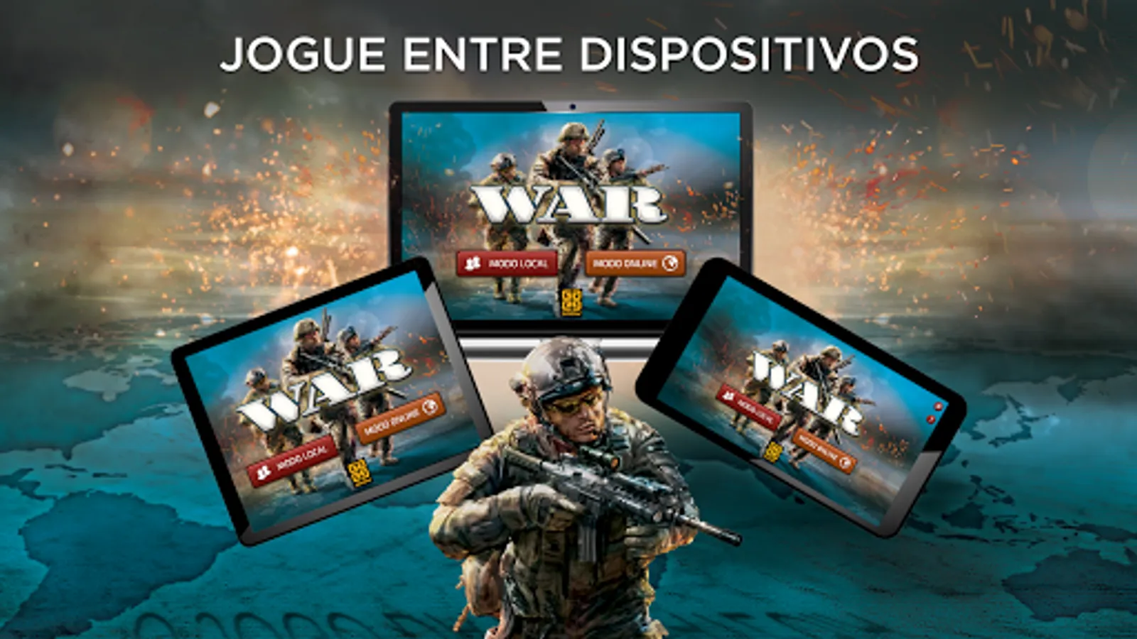 »ONLINE MODE: Have fun playing WAR Online from 3 to 6 people. Now, you can play anytime and with people from anywhere. The "SmartMatching" intelligence system finds the ideal opponent for you, making your matches much more dynamic and challenging. Attention: for this game mode it is necessary to be connected to a Wi-Fi network.