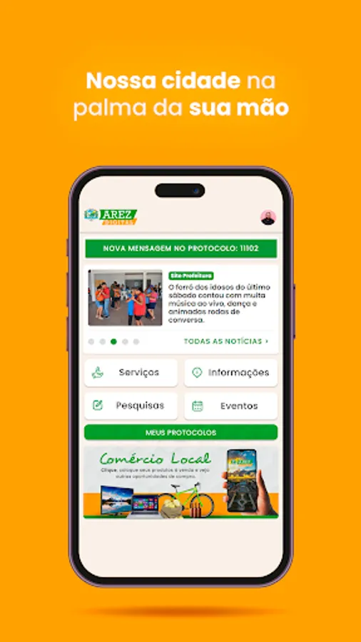 The Arez Digital application aims to provide better communication between the municipal public administration and the population. Its purpose is to facilitate the population's access to municipal services, inform citizens about the cultural agenda, tourism in the region and the latest news in the city. In addition to allowing the user to register manifestations and requests for services.