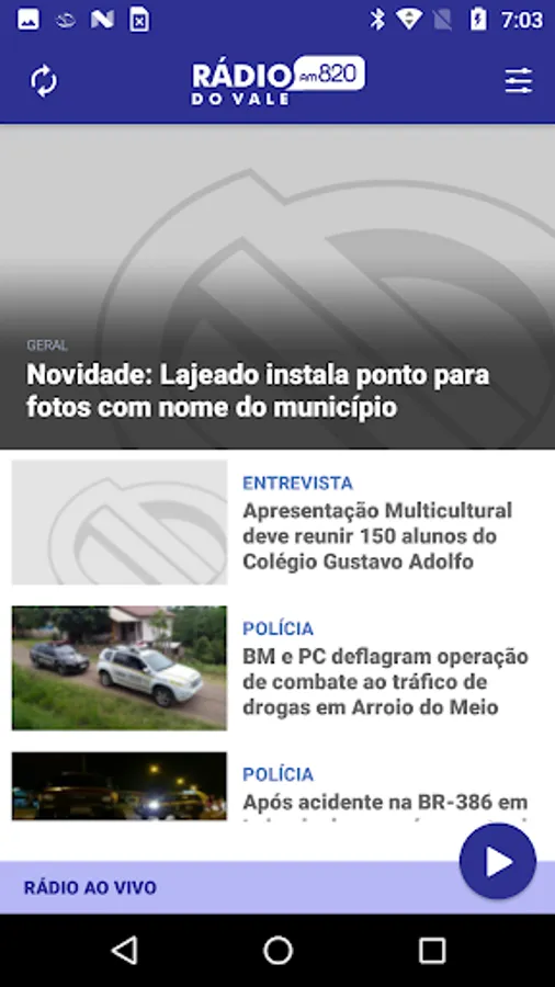 The Vale Radio application allows you to listen live to the programming of the AM 820 in addition to being inside the main news of Vale do Taquari, Rio Grande do Sul, Brazil and the world. Headquartered in Estrela, the station was founded in 1948, the date of the inauguration of Radio Alto Taquari AM.