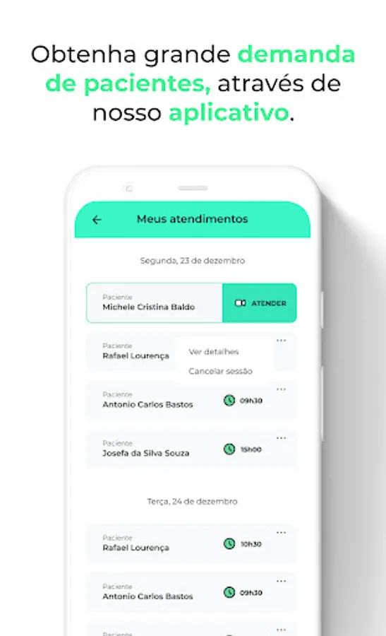 You download the app and pre-register on our platform, later within 24 hours, after analysis, we release your access, from then on you will have the opportunity to help more people every day through their therapeutic and psychiatric care. , to rewrite their life stories.
