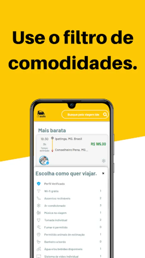 After choosing the best price, in the search engine you will see a variety of offers and choose the driver based on the arrival time of the car, its classification and even the brand of the car. You decide and enjoy a ride you can trust.