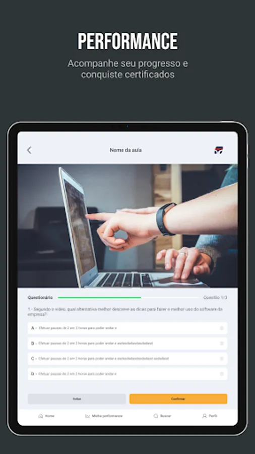 After each video lesson, the collaborating student answers 3 objective questions, for greater guarantee of absorption of the content and ranking. That is, it is possible to monitor the performance of each participant and, at the end of each module or program, award employees with the most correct answers.