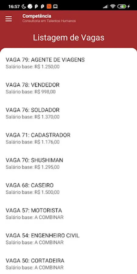 Application created to facilitate registration, referral and access to job vacancies available at Competência Consultoria, in Dourados / Mato Grosso do Sul.