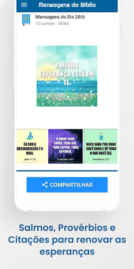 Every day new messages with Psalms, Proverbs and Bible Verses to share your faith through the word of God and the teachings of Christ.