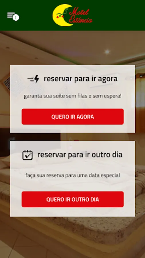 Make a reservation in a practical and quick way, accessing the “go now” tab on the app, which allows you to book from wherever you are, minutes before coming to the motel and ensure that the suite is ready when you get here.