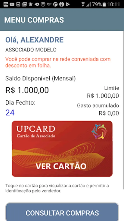 Through the application the associate can also check your balance and invoices in case of discount purchases in sheet.