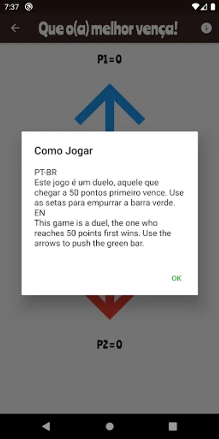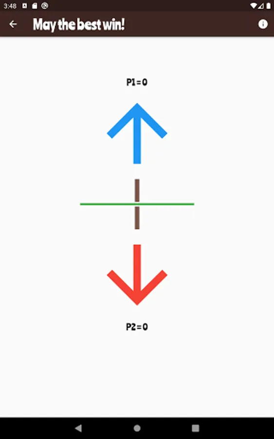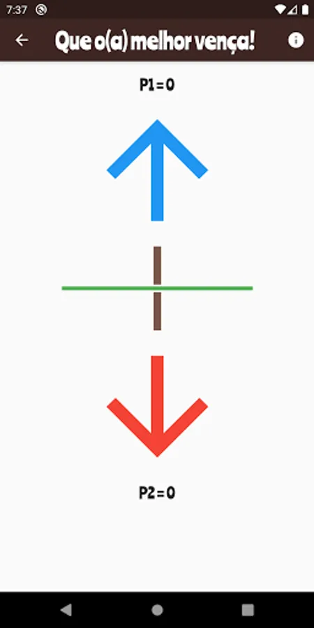 In this simple game you can play against an opponent by clicking on the arrows available on the screen. Whoever reaches 50 points before the opponent wins the game. In addition, for every two points acquired, the opponent will lose one point, making the dispute even more difficult.