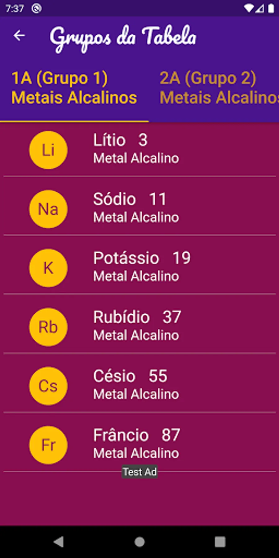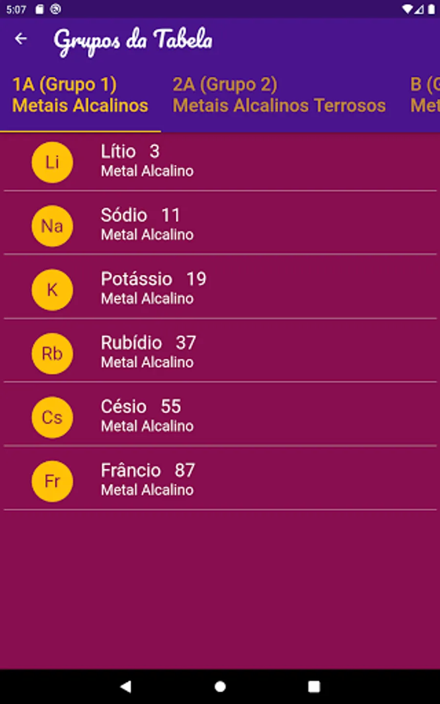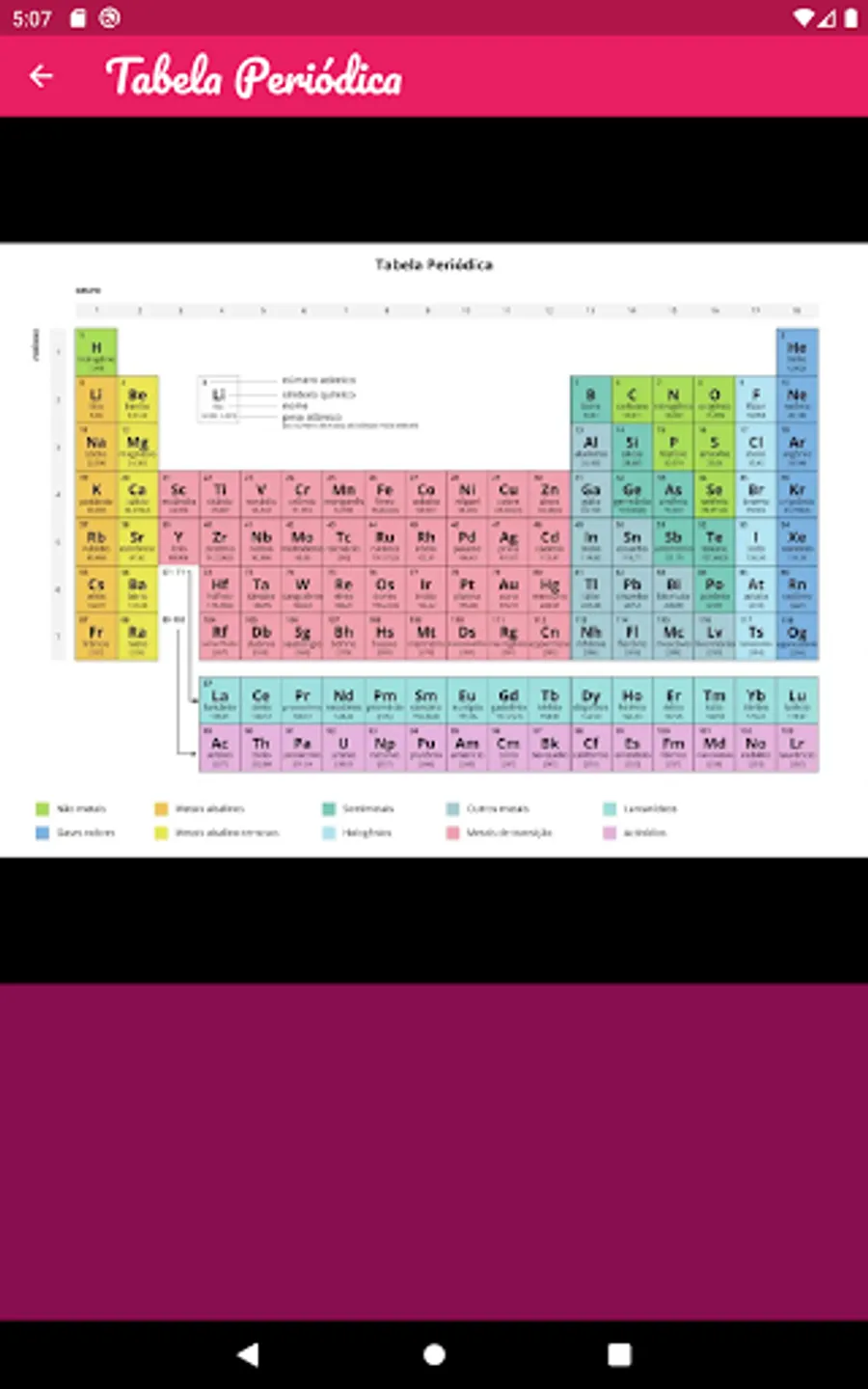 Here you will find the periodic table, its groups by family of elements and separate screens, tables of anions, cations and acids in addition to much more.