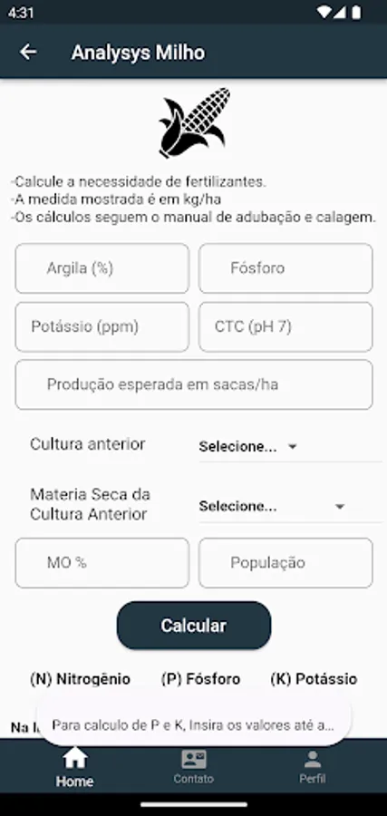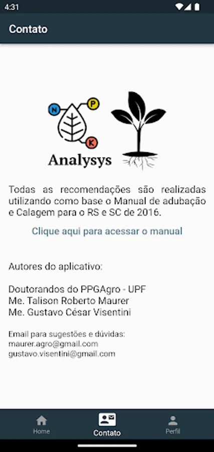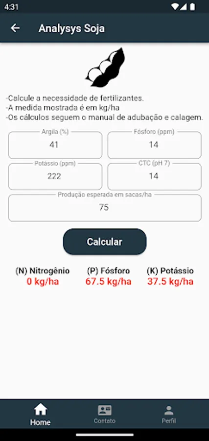 Interpret your soil analysis in a simplified way! All interpretation is done through the Fertilization and Liming Manual for the states of RS and SC 2016.