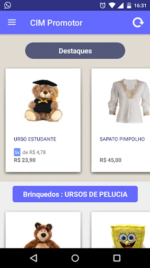 This application was developed to enable the display of products and promotions, messaging to ask questions products, create wish lists and make reservations, all the online form, and only off-line product withdrawal in the physical store.